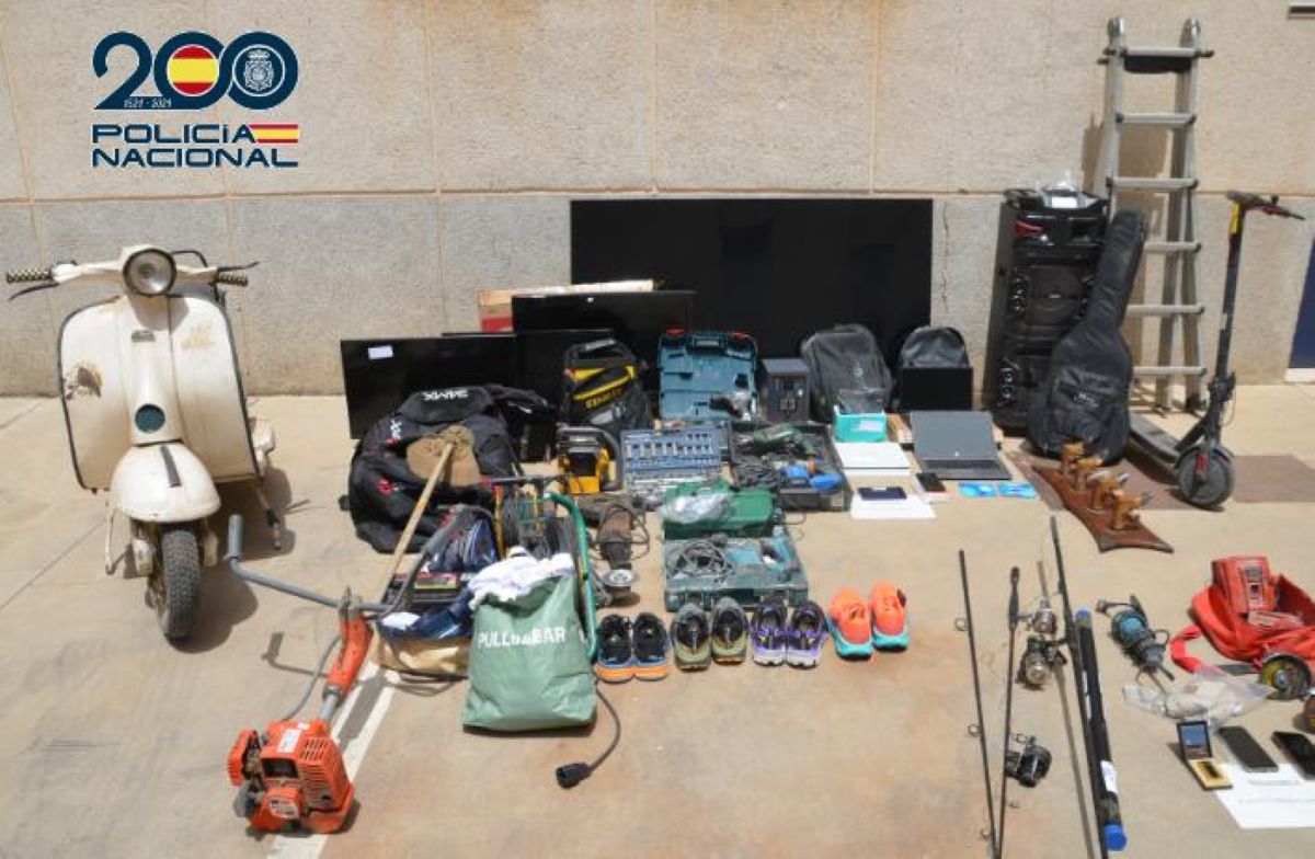Fruto de los registros efectuados, se recuperaron numerosos efectos procedentes de robos, entre ellos una motocicleta, tres televisores, cuatro ordenadores portátiles, varios maletines de herramientas, una radial, tres taladros, una motosierra, un equipo de música, diferente ropa de marca, y otros efectos, además de una escopeta y distintos cartuchos de diferentes calibres, 12,83 gramos de hachís y 529 euros en efectivo.