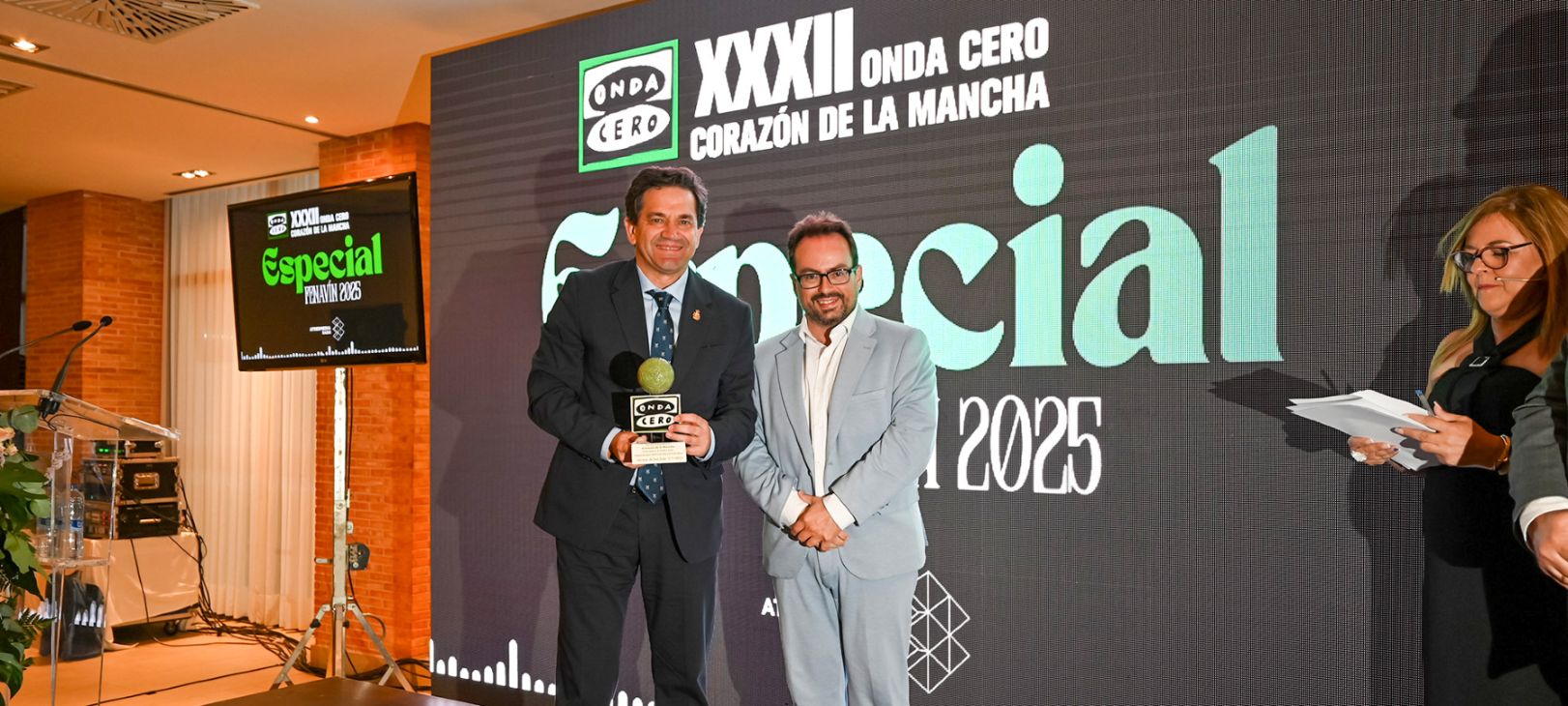El presidente de la Diputación de Ciudad Real, Miguel Ángel Valverde, ha recogido esta tarde en Alcázar de San Juan el galardón especial concedido a la edición de 2025 de la Feria Nacional del Vino en el marco de los Premios Corazón de La Mancha. En su trigésimo segunda edición, estos reconocimientos, otorgados por Onda Cero, han vuelto a reconocer la trayectoria, el compromiso y la aportación al desarrollo de la comarca y de la provincia de personas, instituciones y entidades destacadas en distintos ámbitos como el institucional, social, sanitario, cultural, científico y deportivo.