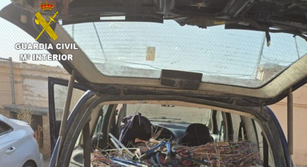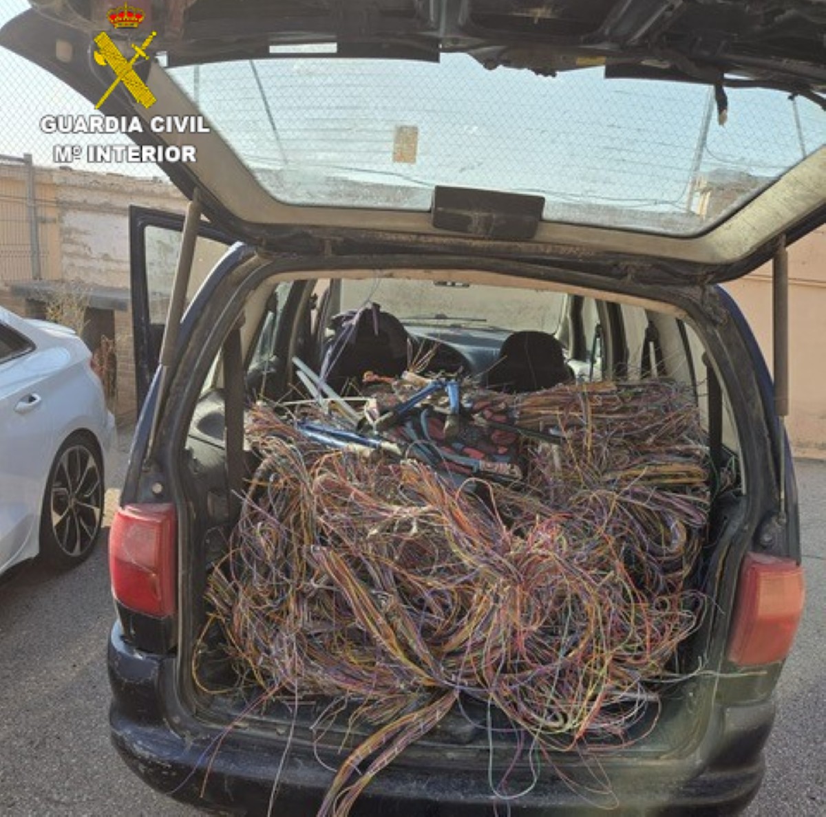 De inmediato se trasladó al lugar una patrulla de la Guardia Civil, localizando a unos 50 metros de la carretera, entre la vegetación, a tres varones portando utensilios y herramientas para el corte del cableado telefónico. En las proximidades, los agentes hallaron grandes cantidades de cable ya cortado, preparado para su transporte.