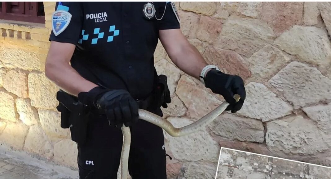 La policía sanclementina ha explicado que se trata de una culebra de escalera (Zamenis scalaris), una especie no venenosa y protegida, habitual en esta zona.