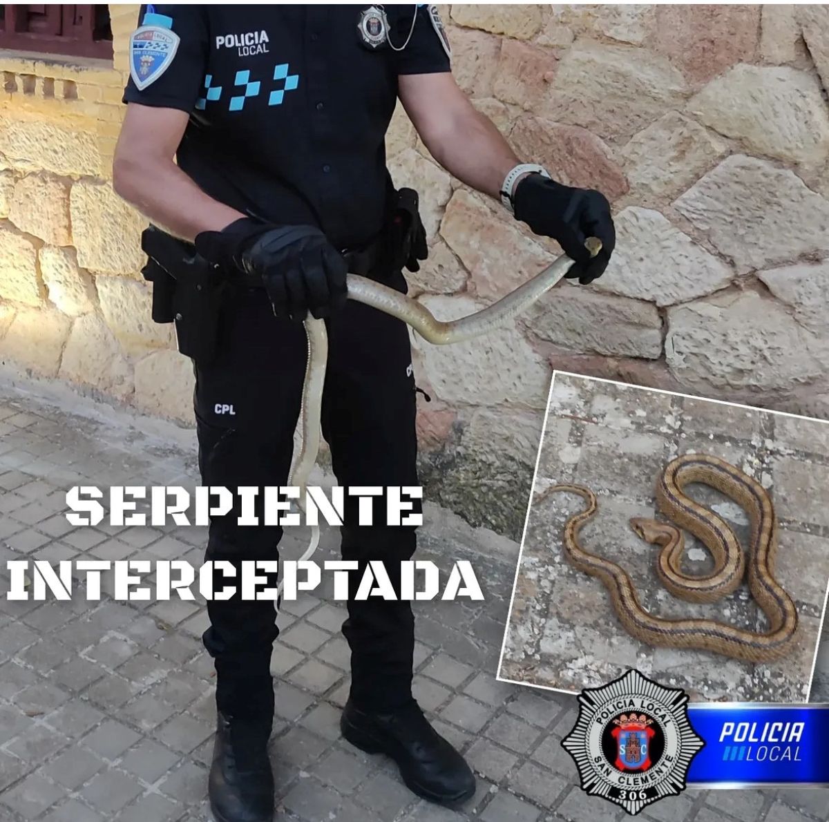 La Policía Local de San Clemente ha interceptado este viernes una serpiente en las inmediaciones de la Plaza de Toros de la localidad, según ha informado el cuerpo de seguridad municipal en las redes sociales.