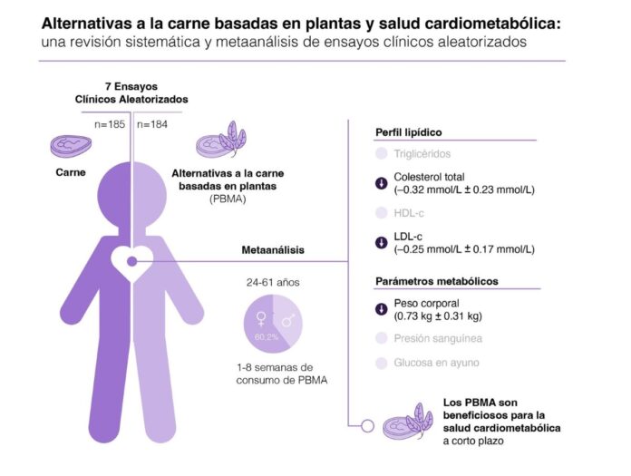 Los resultados, pese a contar con pocos estudios que han explorado sus efectos, reafirman los posibles beneficios que tendría el reemplazo del consumo de carne por estas alternativas vegetales en la salud cardiometabólica. Cabe destacar que estos productos simulan a la carne en características organolépticas (textura, aroma, sabor) y en composición nutricional, por ello, podrían ser consideradas como un paso previo a la transición hacia dietas más vegetales sin renunciar a la «experiencia de consumir carne».