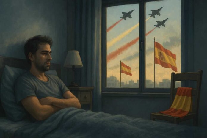 Por eso, frente a los cañones y los uniformes, la mejor respuesta es la conciencia. Frente al ruido de los aviones, el silencio de la reflexión crítica. Frente a la fiesta nacional, la negativa activa: quedarse en la cama, no como gesto de indiferencia, sino como acto de desobediencia simbólica. Negarse a participar en el rito de la sumisión.