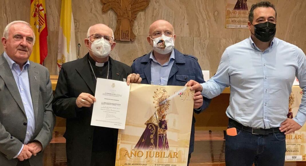 El representante del Gobierno del presidente Emiliano García-Page que ha acompañado al obispo de Albacete, Ángel Fernández Collado; al alcalde de Alcaraz, Pedro Valero y al delegado Episcopal para el Año Jubilar, Ramón Sánchez Calero, en este acto de trasladar a la sociedad, el nombramiento de los Reyes de España como Hermanos Mayores de la Real e Ilustre Archicofradía de Nuestra Señora de Cortes, ha reconocido el trabajo realizado por la Comisión del VIII Centenario, en la que participan las diferentes «Administraciones» para que hoy «sea una realidad» esta aceptación del Palacio de la Zarzuela.