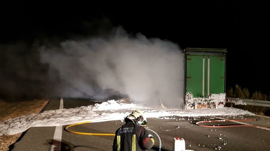Anoche los bomberos de Albacete tuvieron que intervenir para sofocar un incendio en la A30, en dirección Murcia, después de que un camión de ferralla saliera ardiendo, posiblemente debido a los frenos, según aseguran desde este servicio.