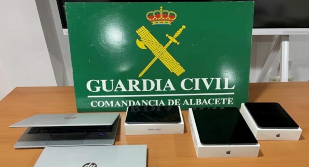 Entre los dispositivos sustraídos y recuperados por la Guardia Civil de Albacete, valorados en 6.000 euros, se encuentran dos ordenadores portátiles y tres tablets de diferentes tamaños, que se encontraban en sus embalajes originales y, pendientes por la empresa propietaria, de su entrega a sus empleados.