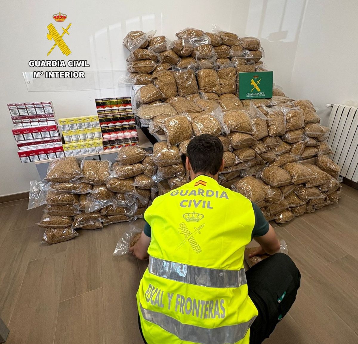 Efectivos del Destacamento Fiscal y Fronteras de la Guardia Civil de Albacete han detenido a dos vecinos de Sevilla, de 32 y 35 años, como presuntos autores de un delito de contrabando, tras intervenirles en el vehículo en que viajabas 139 kilos de picadura de tabaco, además de 16 cartones de cigarrillos de diferentes marcas comerciales sin cumplir la normativa vigente sobre impuestos especiales.