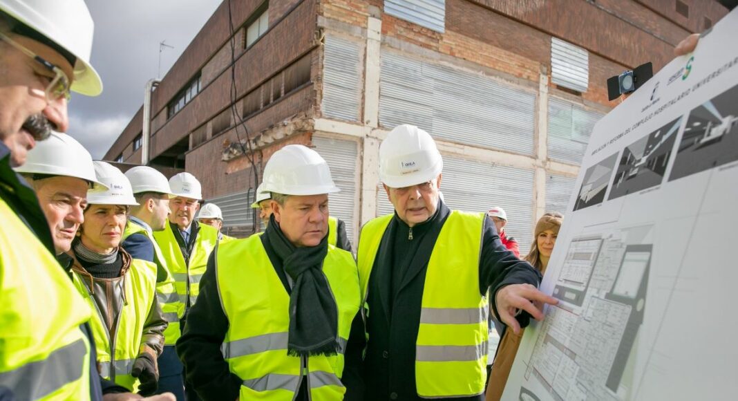 Antes de visitar el servicio de Oncología Radioterápica, el presidente de Castilla-La Mancha ha comprobado cómo evolucionan las obras del Plan Funcional de reforma y ampliación del Complejo Hospitalario Universitario de Albacete.