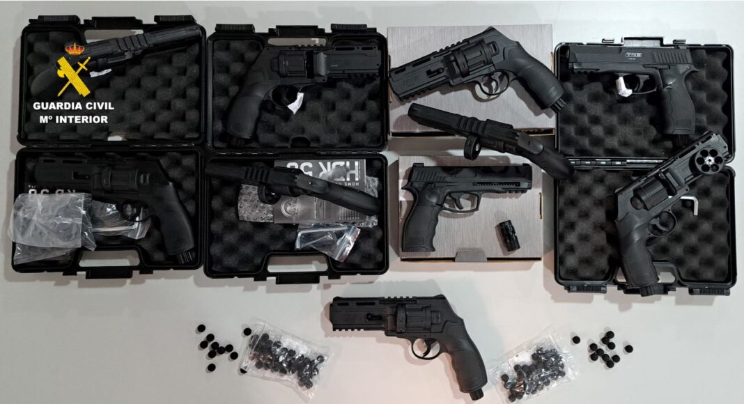 Fruto de estas inspecciones, la Guardia Civil localizó e intervino en uno de estos establecimientos varias armas cortas, entre pistolas y revólveres, accionadas por dióxido de carbono, cuya munición son unas bolas de goma del calibre 50 o similares, que habían sido comercializadas como armas de aire comprimido (categoría cuarta del Reglamento de Armas) y que no son susceptibles de ser catalogadas como tales por su potencial efecto lesivo.