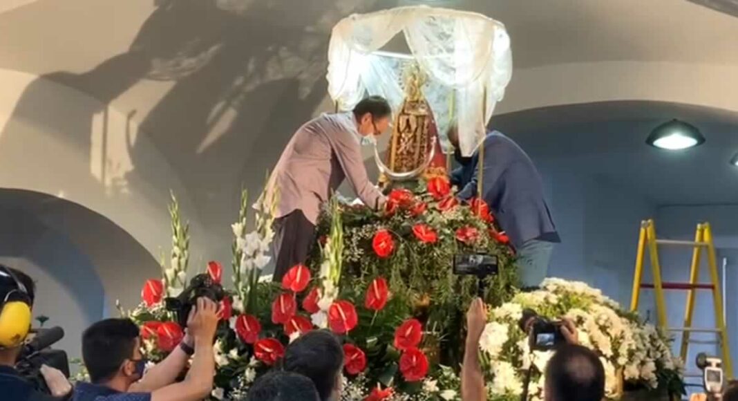 Más de una treintena de albaceteños se han dado cita en el Recinto Ferial para arropar a su matrona, la Virgen de Los Llanos, que ha sido recibida por las autoridades municipales, civiles y eclesiásticas, al son de la banda municipal y la coral.