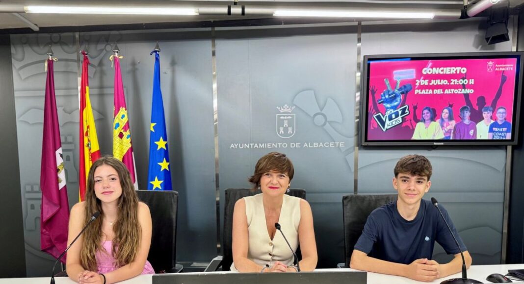 La concejala de Cultura de Albacete, Elena Serrallé, ha presentado en rueda de prensa uno de los eventos destacados del Verano Cultural 2025: el concierto que ofrecerán, el 2 de julio a las 21.00 horas en la plaza del Altozano, algunos de los jóvenes artistas que participaron en el famoso programa La Voz Kids, superaron las audiciones a ciegas y llegaron a las batallas.