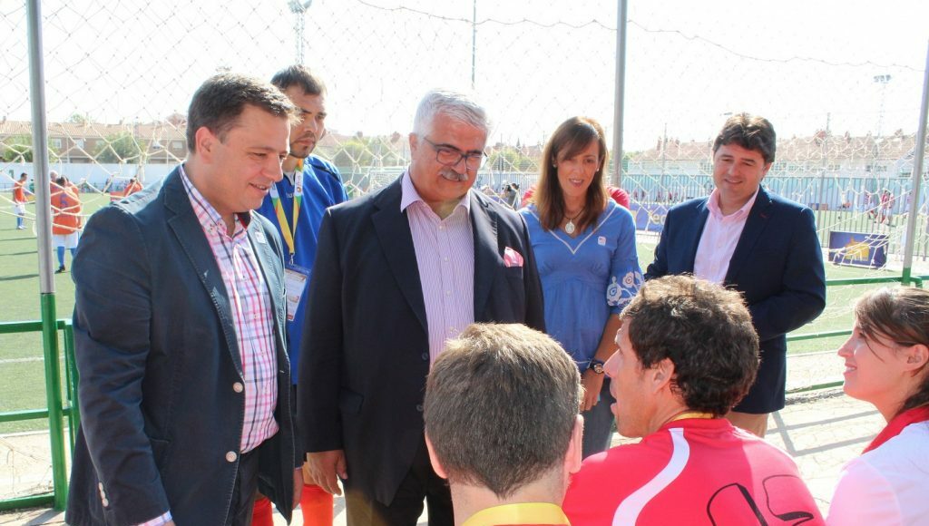 El alcalde de Albacete, Manuel Serrano, ha agradecido al presidente de la Federación de Deportes para Personas con Discapacidad Intelectual de Castilla La Mancha (FECAM), Eloy Molina, que haya confiado un año más en nuestra ciudad para celebrar su Campeonato Nacional de Fútbol 7 Inclusivo.