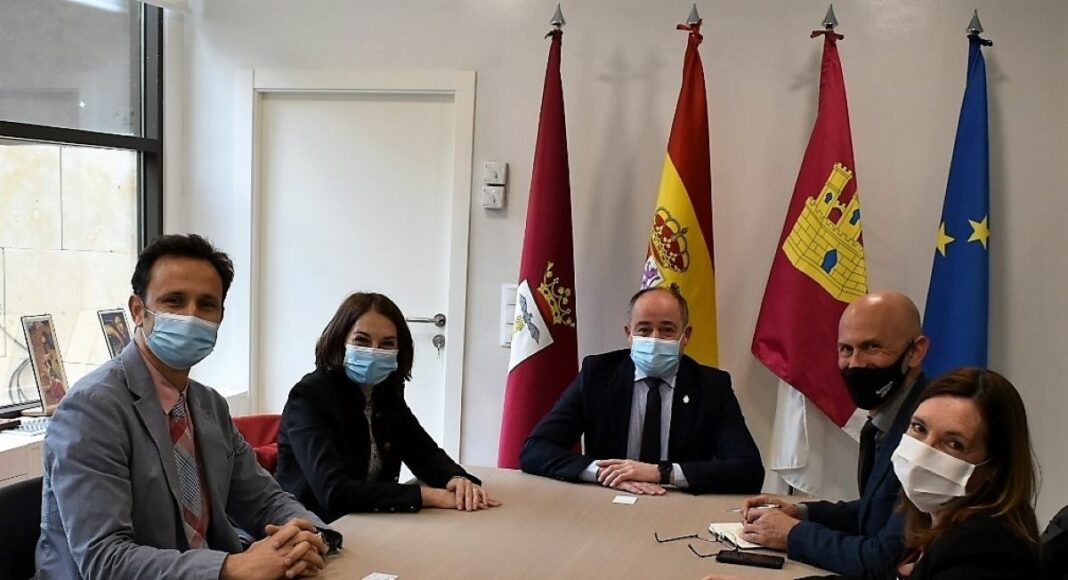 El alcalde de Albacete, Emilio Sáez, ha mantenido una reunión de trabajo con la directora general del Territorio Centro de Telefónica (Castilla-La Mancha, Castilla y León y Madrid), Beatriz Herranz; el director autonómico de la compañía de telecomunicaciones, Teudiselo Díaz, y el responsable de Cuentas de Administraciones Públicas, Avelino Lorenzo.