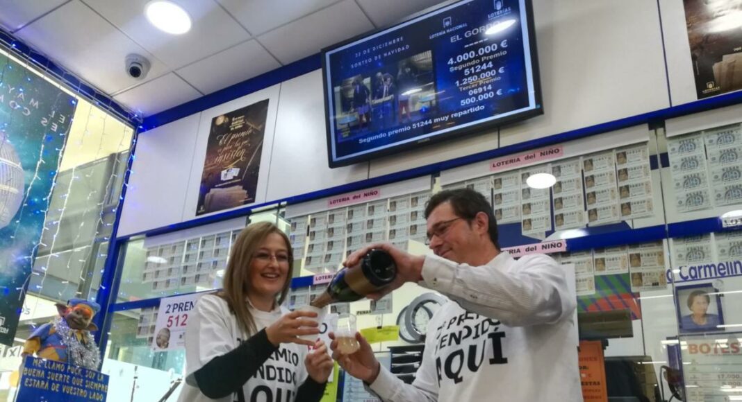 Jesús y Cari Mesas son los dueños de la administración de lotería nº 20 ‘Doña Carmelina’ situada en el Centro Comercial Imaginalia. Son hermanos y es el tercer premio que reparten después de dos premios de la Lotería Nacional. Hoy han dado el 2º premio de la Lotería de Navidad.