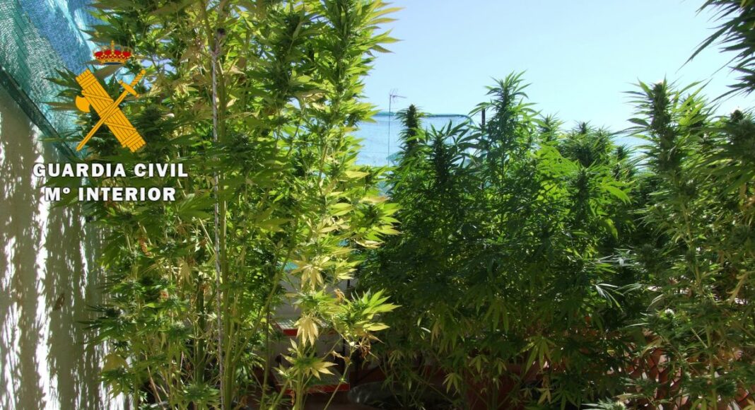 Durante el registro llevado a cabo en el interior de la vivienda, los agentes de las Fuerzas y Cuerpos de Seguridad localizaron en una terraza del inmueble, una plantación de 13 plantas de marihuana, rodeada de malla de ocultación para evitar su localización, en avanzado estado de maduración, con una altura media de 1,5 metros, que arrojaron un peso en bruto de 10 kilos.
