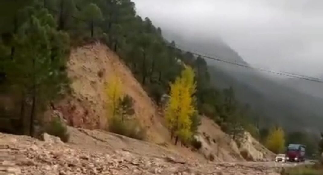 La CM-412 a su paso por Molinicos (Albacete) está totalmente cortada, a la altura de su kilómetro 208, debido a un deslizamiento de tierra.