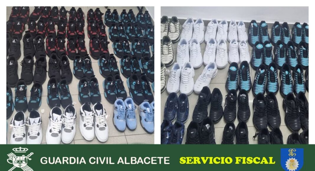 Especialistas del Destacamento Fiscal y Fronteras de la Guardia Civil de Albacete han investigado a un varón de 40 años de edad, residente en la Región de Murcia, como presunto autor de un delito contra la propiedad industrial, por vulnerar el derecho de marca. En la actuación policial se han intervenido 245 pares de zapatillas deportivas, presuntamente falsificadas.
