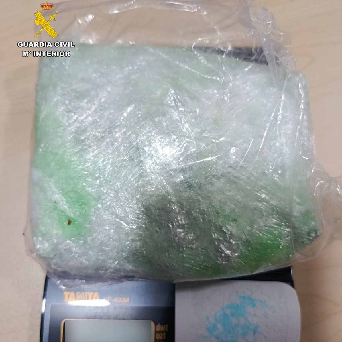 Durante la inspección, tanto de sus pertenencias, como del vehículo, los guardias civiles que participan en el dispositivo localizaron un paquete que contenía una sustancia de color blanquecino que, tras ser sometido a la prueba de narcotest, resultó ser cocaína, arrojando un peso de 209 gramos.