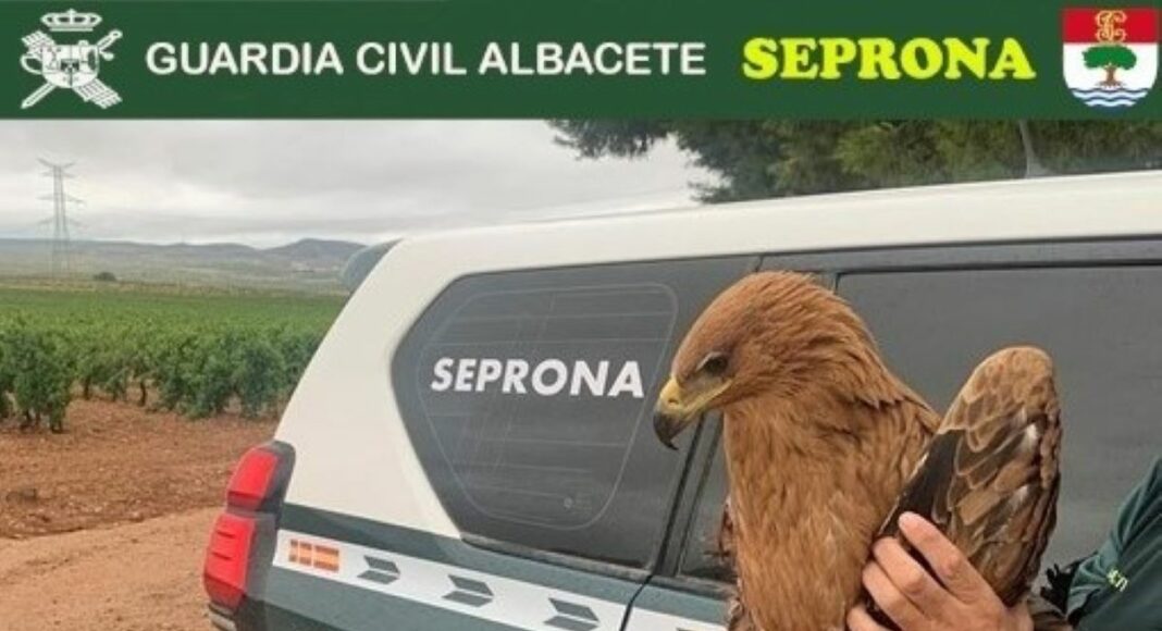Efectivos del Servicio de Protección de la Naturaleza (Seprona) de Almansa han entregado en el centro de Recuperación de la Fauna Silvestre de Albacete, tras ser localizadas por dos particulares, un ejemplar de águila imperial y otro de águila perdicera, ambas con heridas en sus alas que les impedían levantar el vuelo.