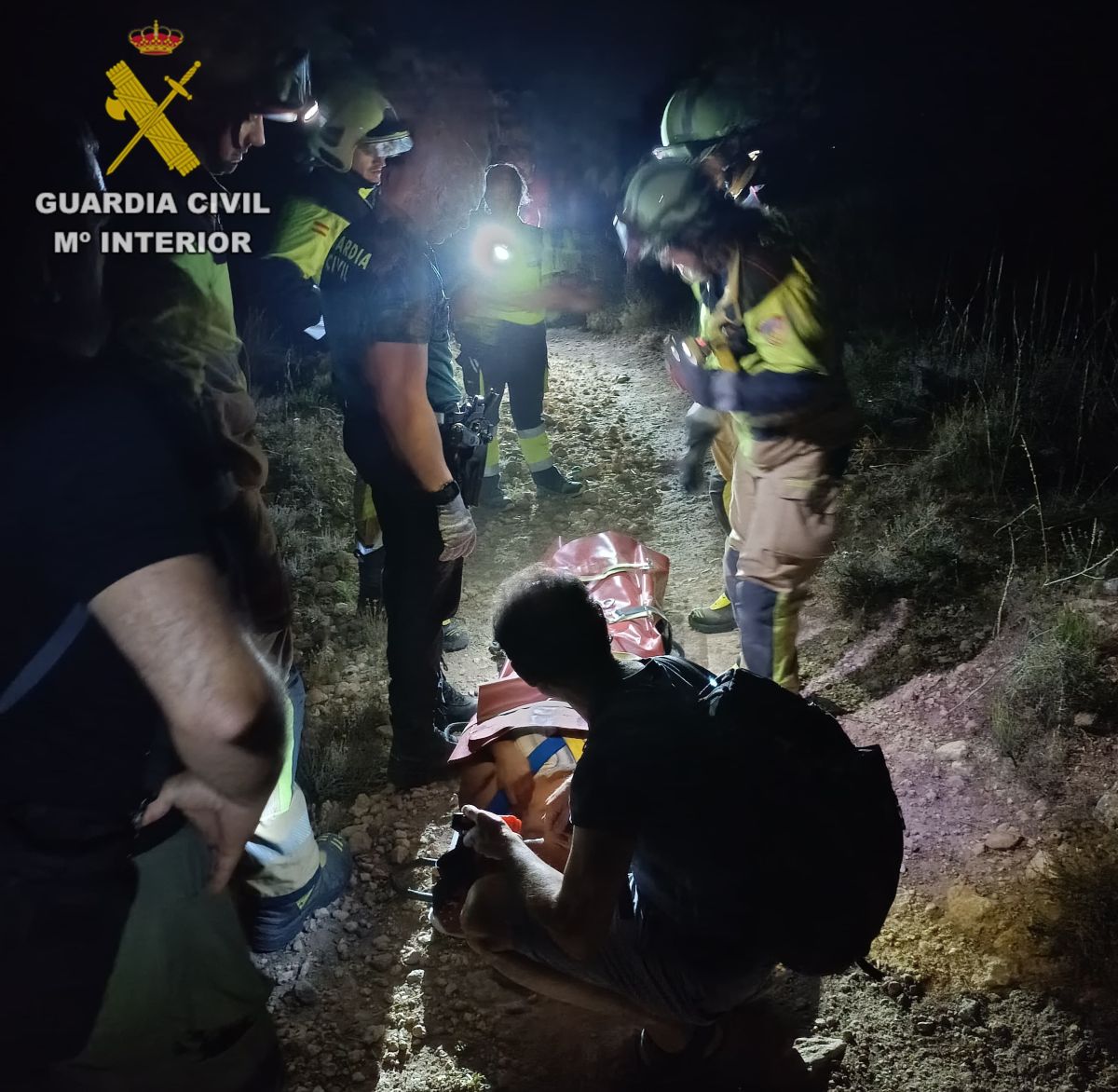 Una patrulla de la Guardia Civil se desplazó hasta el lugar y comprobó que el herido presentaba lesiones de consideración que le impedían moverse, en una zona escarpada y de difícil acceso.