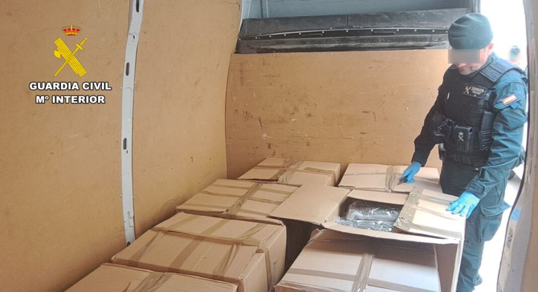 Una vez identificado su conductor y único ocupante, los guardias civiles realizaban una inspección de la furgoneta, localizando en su parte trasera 10 cajas de cartón de grandes dimensiones que contenían 135 bolsas de plástico prensadas y envasadas con 155 kilos de marihuana en forma de cogollos, listos para su distribución y venta.
