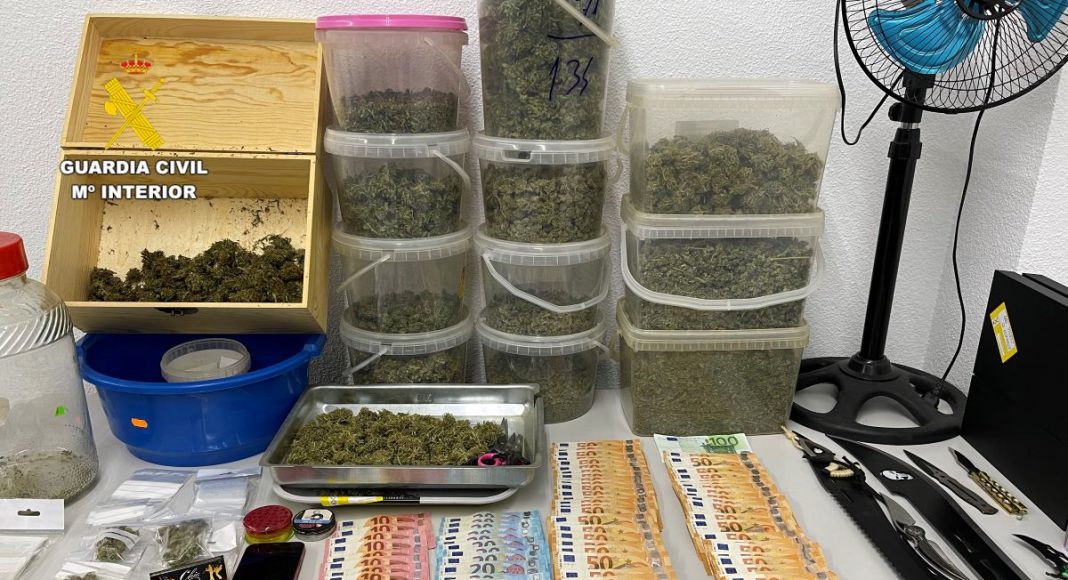 Detenido un vecino de Villarrobledo tras incautarle 4.700 gramos de marihuana, 3.500 euros y varias armas
