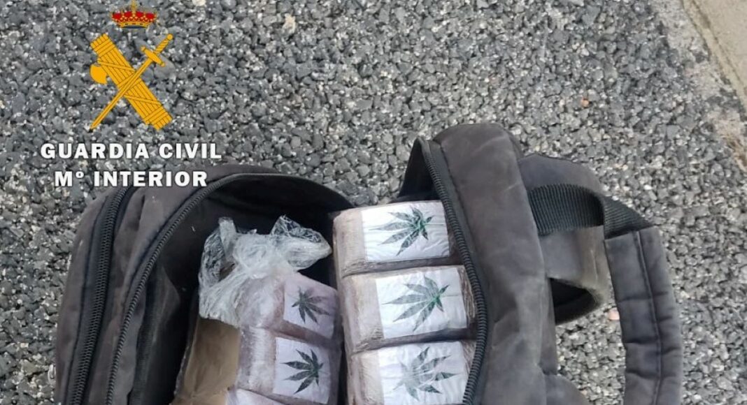 Los detenidos arrojaron por una de las ventanillas del vehículo en el que viajaban una mochila que contenía el hachís, concretamente 165 pastillas de 50 gramos de peso, al percatarse de la presencia de la Guardia Civil en un dispositivo operativo, ha informado la Guardia Civil en un comunicado.