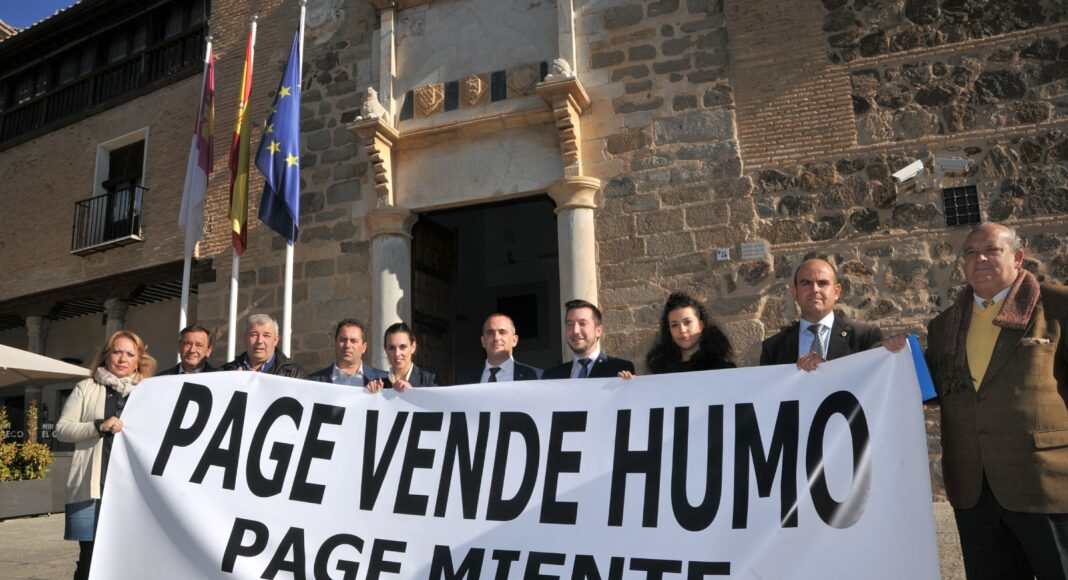 Bajo la pancarta ‘Page solo vende humo y Page miente’, los alcaldes de Caudete, Minaya, Porzuna, El Casar, Arroba de los Montes, Ontur, Navalpino, Recas y Azuqueca de Henares han acudido a la sede del Gobierno regional para presentar un documento en el que solicitan un reparto «igualitario» de esta ley para todos los municipios.