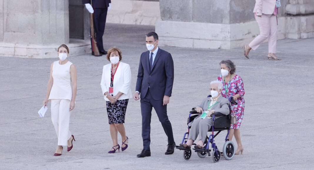 Araceli Hidalgo, la mujer de 97 años que fue la primera vacunada de Covid-19 en España, ha participado este jueves en el homenaje oficial a las víctimas de la pandemia, en donde ha pedido a los jóvenes «que respeten la pandemia».