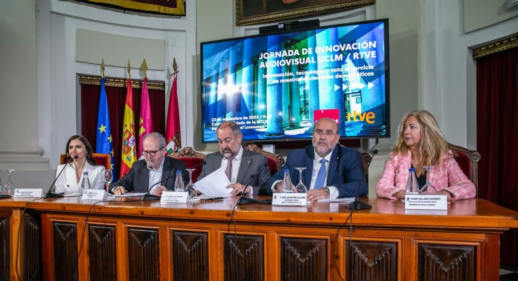 Al acto de inauguración han asistido el rector de la Universidad de Castilla-La Mancha (UCLM), Julián Garde; la directora de Radio Televisión Española en Castilla-La Mancha, Cristina Bravo; y el director de Estrategia Tecnológica de RTVE, Pere Vila.