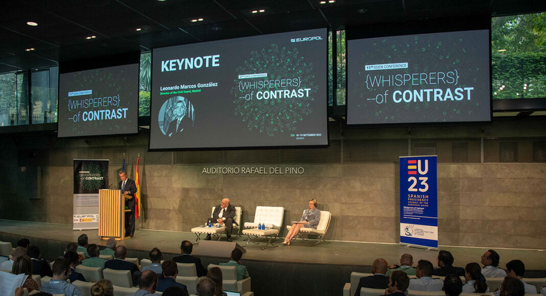 El director general de la Guardia Civil, Leonardo Marcos, ha inaugurado hoy la 11ª Conferencia EDEN sobre Protección de Datos en las Fuerzas y Cuerpos de Seguridad, organizada por la Guardia Civil en el marco de la Presidencia Española de la UE y bajo el título “Susurrando Contrastes: Retos y Oportunidades de Protección de Datos en el Ámbito Policial”.