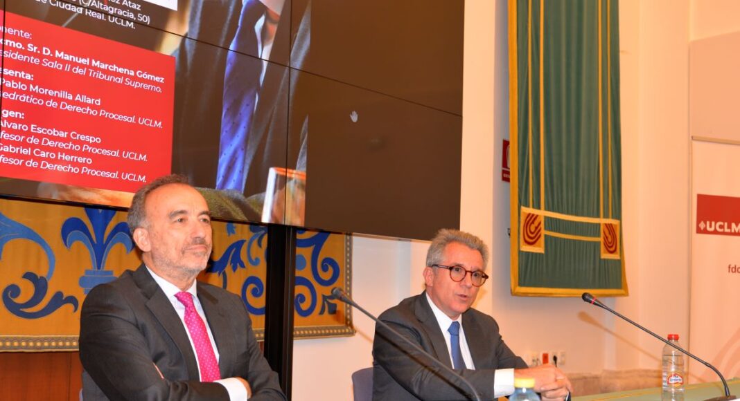El juez Marchena, que fue presentado por el catedrático de Derecho Procesal de la UCLM Pablo Morenilla Allard, ofreció a lo largo de su ponencia un análisis detallado sobre el contenido procesal de esta figura, sus ventajas e inconvenientes y las distintas propuestas de reforma para futuro que se han planteado.