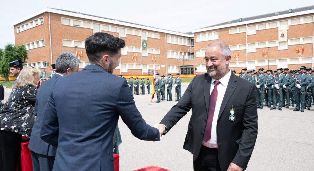 Julián Garde ha recibido la Cruz con Distintivo Blanco de la Orden del Mérito de la Guardia Civil de manos del secretario de Estado de Seguridad, Rafael Pérez; encargado de presidir el acto que ha contado con la presencia del director general de la Guardia Civil, Leonardo Marcos, entre otras autoridades.