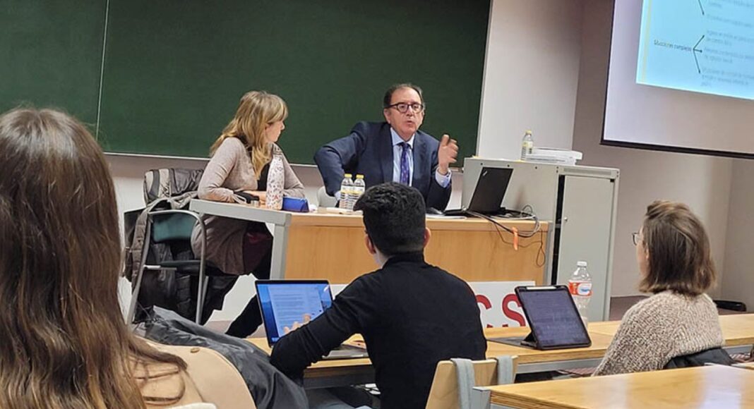 Además de explicar al estudiantado cuál es la trayectoria penitenciaria de una persona privada de libertad y de la responsabilidad de la Institución Penitenciaria en la gestión de las penas alternativas a la prisión, en su charla el secretario general de Instituciones Penitenciarias ha abordado temas de gran actualidad como la situación de los españoles privados de libertad en el extranjero y las vías para su traslado a prisiones españolas, los últimos datos de reincidencia penitenciaria extraídos del informe presentado en 2022 o los avances en la incorporación de la justicia restaurativa en la ejecución penitenciaria.
