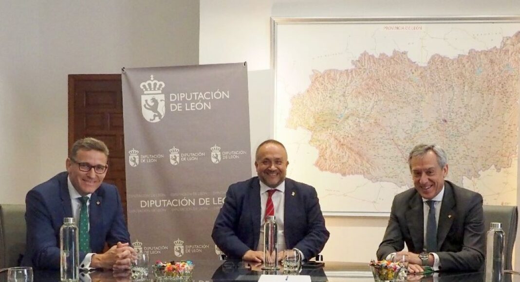 El presidente de la Diputación de León, Gerardo Álvarez Courel, ha mantenido una reunión de trabajo con los máximos responsables de Eurocaja Rural, que le han informado de la gran acogida que están recibiendo sus nuevas oficinas en los municipios de la provincia, de la actividad que está desarrollando en la comunidad autónoma y de la positiva trayectoria de su balance y cuenta de resultados.