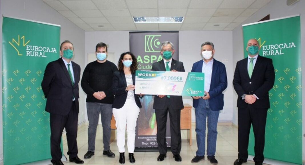 La Fundación Eurocaja Rural ha entregado un cheque con valor de 7.000 euros a la Asociación de Padres y Amigos del Sordo – ASPAS Ciudad Real, en reconocimiento al proyecto Servicio de Intermediación Laboral para personas sordas de la provincia de Ciudad Real, una de las diez iniciativas ganadoras de la 5ª edición de los ‘Premios WORKIN’.