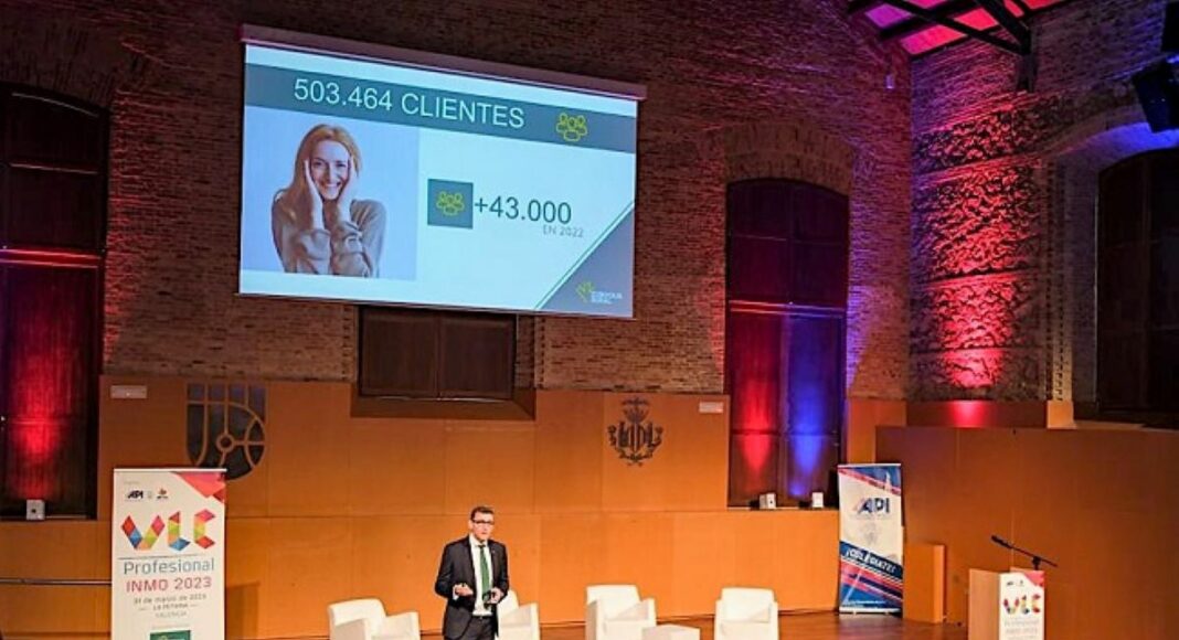 Víctor Manuel Martín López, director general de Eurocaja Rural, ha participado esta mañana en el evento ‘Profesional INMO 2023’ organizado por API Y APIVA y patrocinado por Eurocaja Rural, que ha acogido el Auditorio del Centro Cultural y Deportivo ‘La Petxina’ de Valencia.
