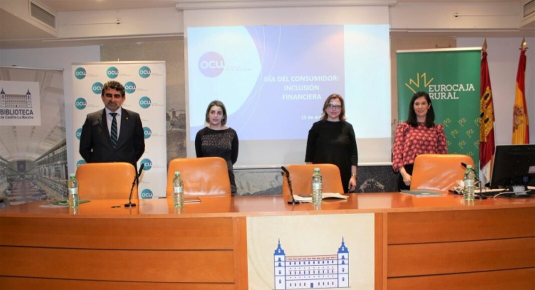 El director de la División de Relaciones Institucionales de Eurocaja Rural, Miguel Ángel Escalante Pinel, ha participado esta mañana en un debate en torno a la exclusión financiera organizado por la OCU, en el que se han hecho públicos los resultados de una encuesta realizada a 2007 vecinos de municipios de menos de 5.000 habitantes. La presentación de dichos datos ha corrido a cargo de Itziar Fernández de la Cruz, delegada de la OCU en Castilla – La Mancha y Eztizen Gregorio Rueda, del Departamento de Comunicación y Relaciones Institucionales a nivel nacional y portavoz de la OCU.