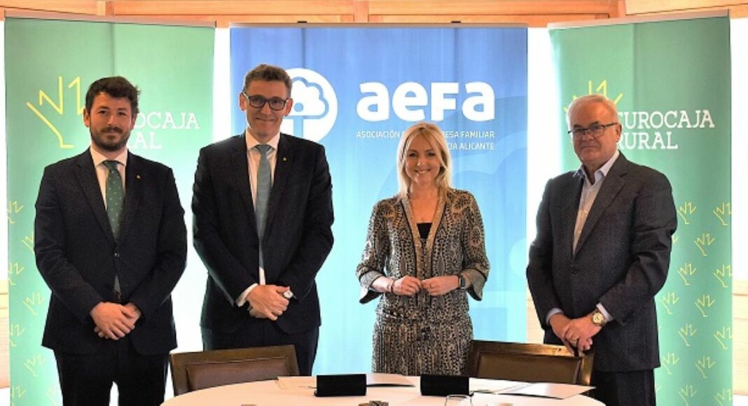 Eurocaja Rural y la Asociación de la Empresa Familiar de la provincia de Alicante (AEFA) se han aliado para contribuir al fortalecimiento de la empresa familiar en la provincia y favorecer a su vez la formación de los empresarios familiares con el fin de fomentar el crecimiento, continuidad y desarrollo de estos modelos empresariales. La alianza se ha sellado con la firma, por primera vez, de un convenio de colaboración entre ambas entidades.