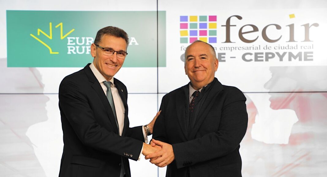 El director general de Eurocaja Rural, Víctor Manuel Martín López, y el presidente de la Federación Empresarial de Ciudad Real (FECIR), Carlos Marín de la Rubia, han suscrito un convenio de colaboración para contribuir al desarrollo del colectivo empresarial en la provincia ciudadrealeña.