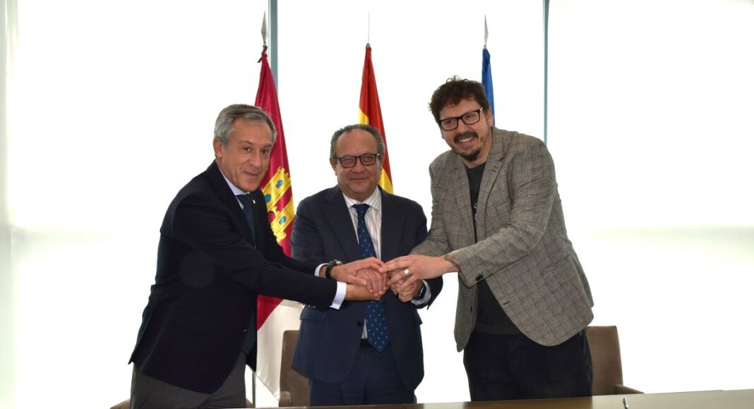 La firma ha tenido lugar en la Consejería de Hacienda, Administraciones Públicas y Transformación Digital de la JCCM por parte del propio consejero, Juan Alfonso Ruiz Molina; el presidente de la Fundación Eurocaja Rural, Javier López Martín; y el presidente de la Fundación CIEES y del Grupo CECAP, Andrés Martínez Medina; quienes han estado acompañados por el viceconsejero de Administración Local y Coordinación Administrativa, Eusebio Robles.