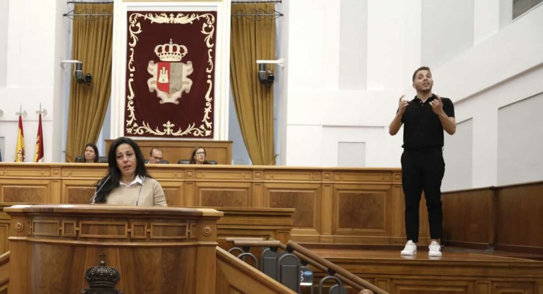 Rubén Beteta y María Lobato son dos de los catorce ILSE (intérprete de lengua de signos) que trabajan en la Federación de Personas Sordas de Castilla-La Mancha, Fesormancha, que es la entidad encargada en las Cortes regionales de que la información parlamentaria llegue a la población sorda.