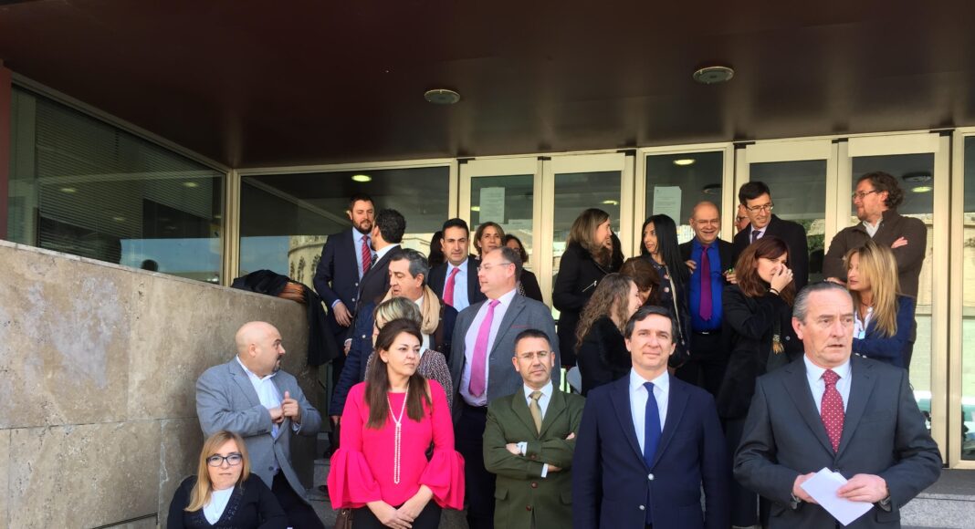 En Toledo, el juez decano, Juan Ramón Brigidano, junto al fiscal jefe de la Fiscalía provincial, Luis Ibáñez, han leído un manifiesto que recogía las reivindicaciones de ambos colectivos dirigidas a la adopción de medidas por las Cortes Generales, el Gobierno y el Consejo General del Poder Judicial, a las puertas de los juzgados de la capital acompañados de alrededor de una veintena de profesionales del ámbito judicial.