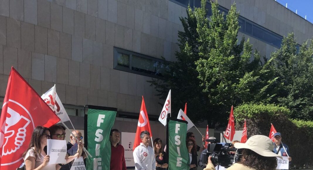 FSIE, UGT, USO y CCOO han iniciado este martes una serie de concentraciones públicas para «visualizar la injusticia» que la Consejería de Educación, Cultura y Deportes está cometiendo con la enseñanza concertada en la región, que reclama una mesa de diálogo en la que abordar una serie de reclamaciones, como aplicar la jubilación parcial, la reducción de carga lectiva y cobrar una paga de antigüedad.