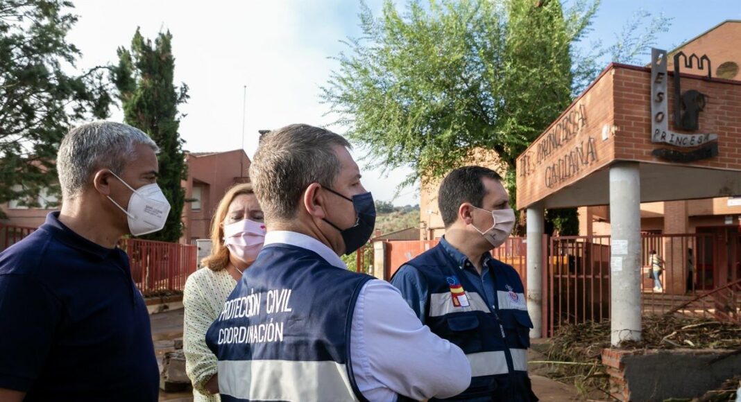 Rodríguez ha acompañado, a primera hora de la mañana, al presidente de Castilla-La Mancha, Emiliano García-Page, en una visita para comprobar los daños ocasionados por la riada en el IES ‘Princesa Galiana’ y en el CEIP ‘Ciudad de Aquisgrán’, ubicados en el barrio de Santa Bárbara de la capital regional, según ha informado la Junta en nota de prensa.