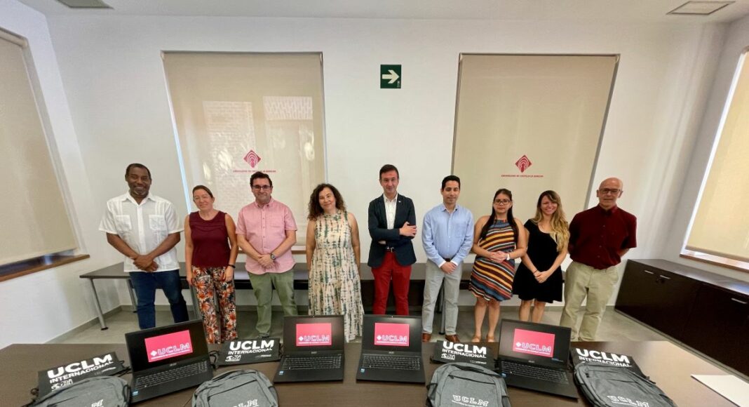 Al acto de entrega de los equipos, celebrado en el Campus de la Antigua Fábrica de Armas de Toledo, asistieron, por parte de la UCLM el vicerrector de Internacionalización, Raúl Martín; las profesoras Rocío A. Baquero y Belén Hinojosa y el técnico informático Javier Hernández, ha informado la UCLM en nota de prensa.