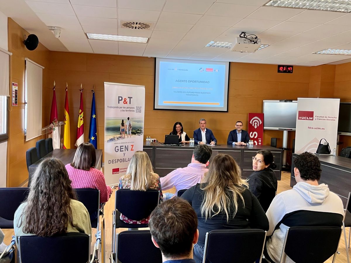 Sánchez de Pablos ha presentado las primeras acciones del Aula Gen Z y Despoblación en la Facultad de Derecho y Ciencias Sociales de la UCLM en Ciudad Real junto a su decano, Fernando Callejas, y la CEO de la empresa mecenas, Personas y Territorios S.L., María Zamora. Ante un auditorio compuesto por estudiantes de grado y doctorado, ha concretado que el agente oportunidad “contará con competencias específicas para ayudar a los emprendedores a detectar las oportunidades y crear empresas, así como para acompañarlos en los eventuales problemas que pudieran surgir en su gestión”.