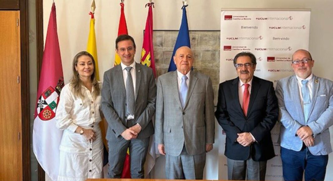 Una delegación de la Universidad Libre de Colombia ha visitado la Universidad de Castilla-La Mancha (UCLM) para profundizar en la colaboración de ambas instituciones en relación con la movilidad internacional y la formación en materia de Derecho Constitucional. En el marco del Título de Especialista en Justicia Constitucional, que se desarrolla en Toledo hasta el próximo 18 de julio, el rector colombiano, Edgar Sandoval Romero, se ha entrevistado con el vicerrector de Internacionalización, Raúl Martín.