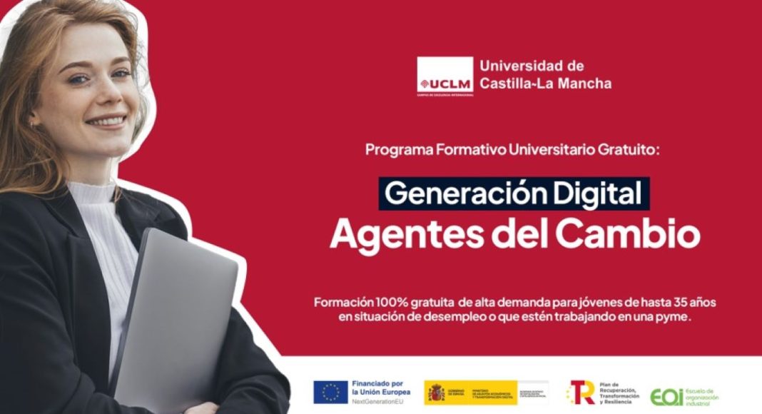 La Universidad de Castilla-La Mancha (UCLM) impartirá el programa formativo Generación Digital Agentes del Cambio, dirigido tanto a personas desempleadas como a aquellas empleadas en Pymes. Este curso capacita a las personas desempleadas a liderar la transformación digital y brinda una formación con conocimientos necesarios para impulsar el crecimiento digital, facilitando el empleo como agentes de cambio.