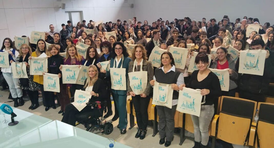 Seguidamente, se ha celebrado una mesa con testimonios de mujeres, en la que han intervenido la enfermera de urgencias y emergencias Ana Chozas; la maestra Esther Portillo, diagnosticada con ELA y activista, y la estudiante y deportista de alto nivel, Leono0r Gómez, que ha relatado su experiencia en competiciones nacionales de Salvamento y Socorrismo. Tras sus intervenciones, el estudiantado ha participado en un coloquio con las ponentes.